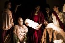 Die drei Schauspieler stellen verblüffend genau berühmte Gemälde Caravaggios nach, für deren Betrachtung man ansonsten von Italien, über Potsdam, Odessa bis in die USA reisen müsste. La Venexiana kreiert dazu mit bekannten Werken Claudio Monteverdis den atmosphärischen Raum.
